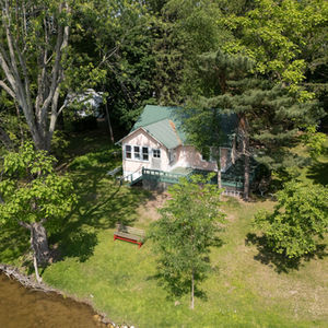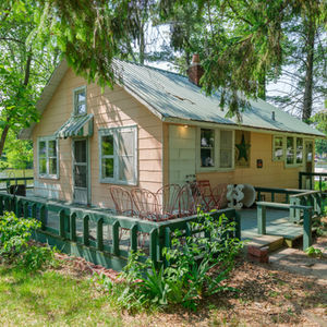 Enjoy 150' of waterfront on Palmer lake! This 832sf cottage is located on a .65 acre lot and offers an oversized 2 car detached garage. Whether you love to boat, kayak or fish; this property has so much potential! With rustic finishes, this cottage will get you on the lake at a great price; or consider building your dream home on an amazing parcel! The interior which once was more divided, now has an open floor plan; with the kitchen and dining room on one side and living room bedroom on the other side. The home offers a sunroom and wrap around porch to enjoy lake views and summer breezes! The home has a metal roof, basement for plenty of storage (exterior access), and don't miss the pull down stairs to the attic with extra space!
